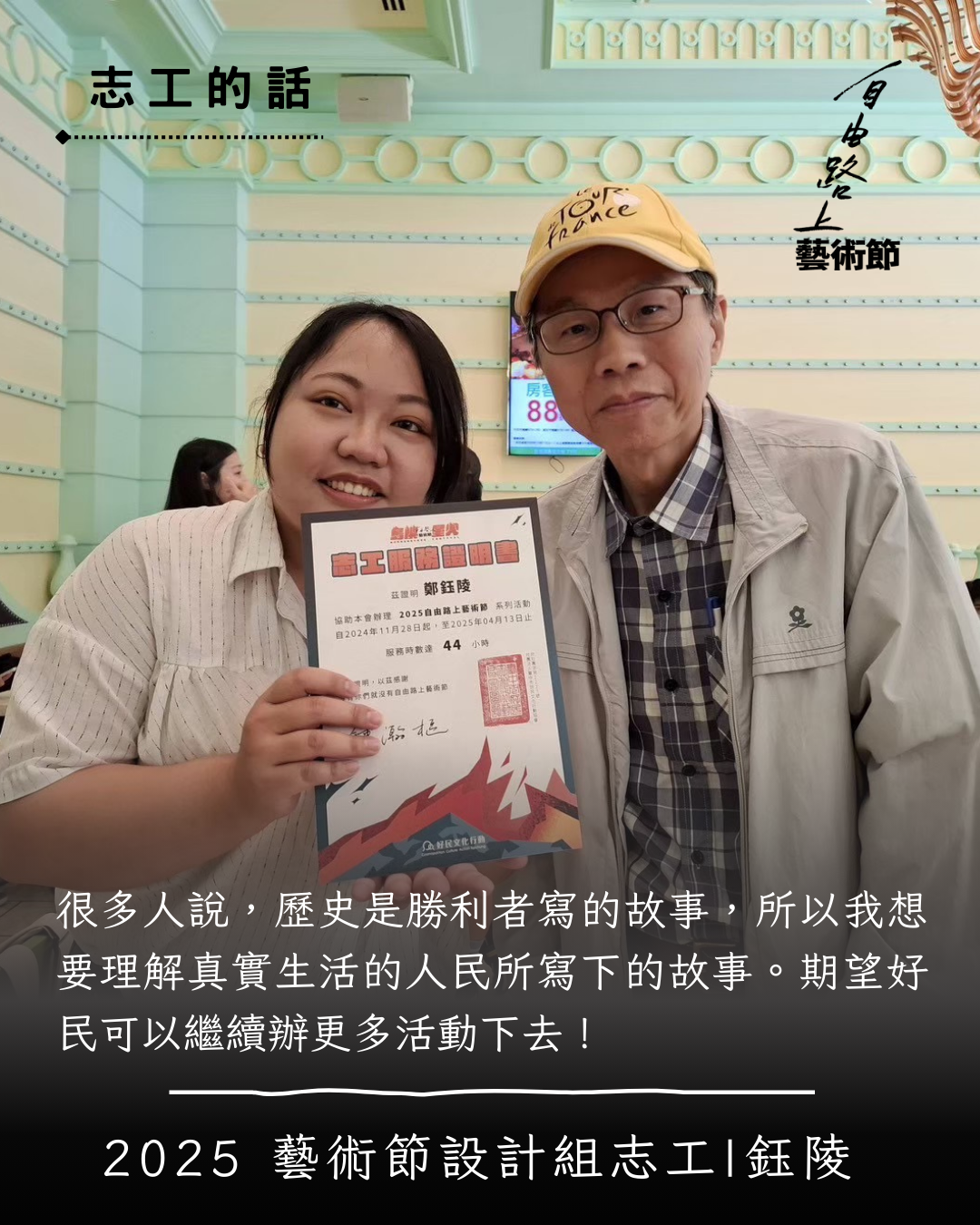 很多人說,歷史是勝利者寫的故事,所以我想要理解真實生活的人民所寫下的故事。期望好民可以繼續辦更多活動下去!