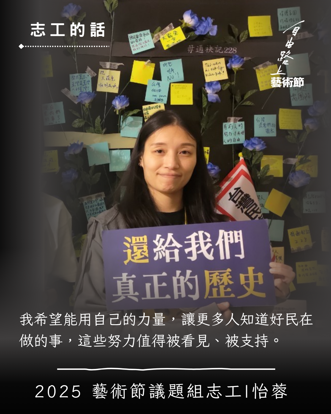我一直相信唯有認識自己的歷史、知道我們從哪裡來,才能真正理解未來要走向哪裡。過去參與好民的活動,讓我更了解台灣,甚至是台中這片土地的歷史。我感受到當我們能夠看見過去,就能更清楚地面對當下的困境,並思考該如何走下去。