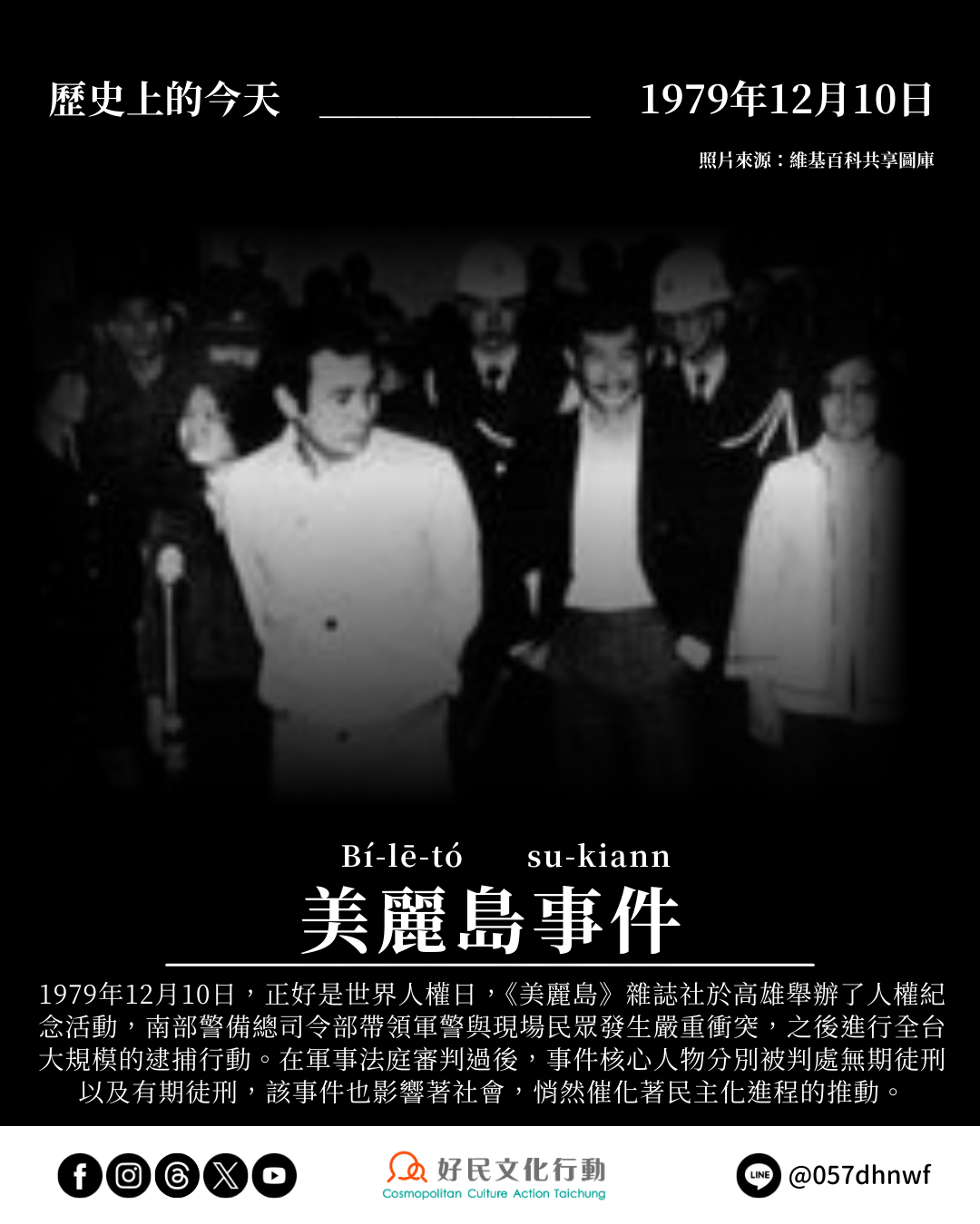 在人權紀念日這天發生的美麗島事件,並不單純只是一個台灣的歷史事件,對台灣人而言,它是我們的過去,影響著我們的現在,而我們則要把它延續到未來。