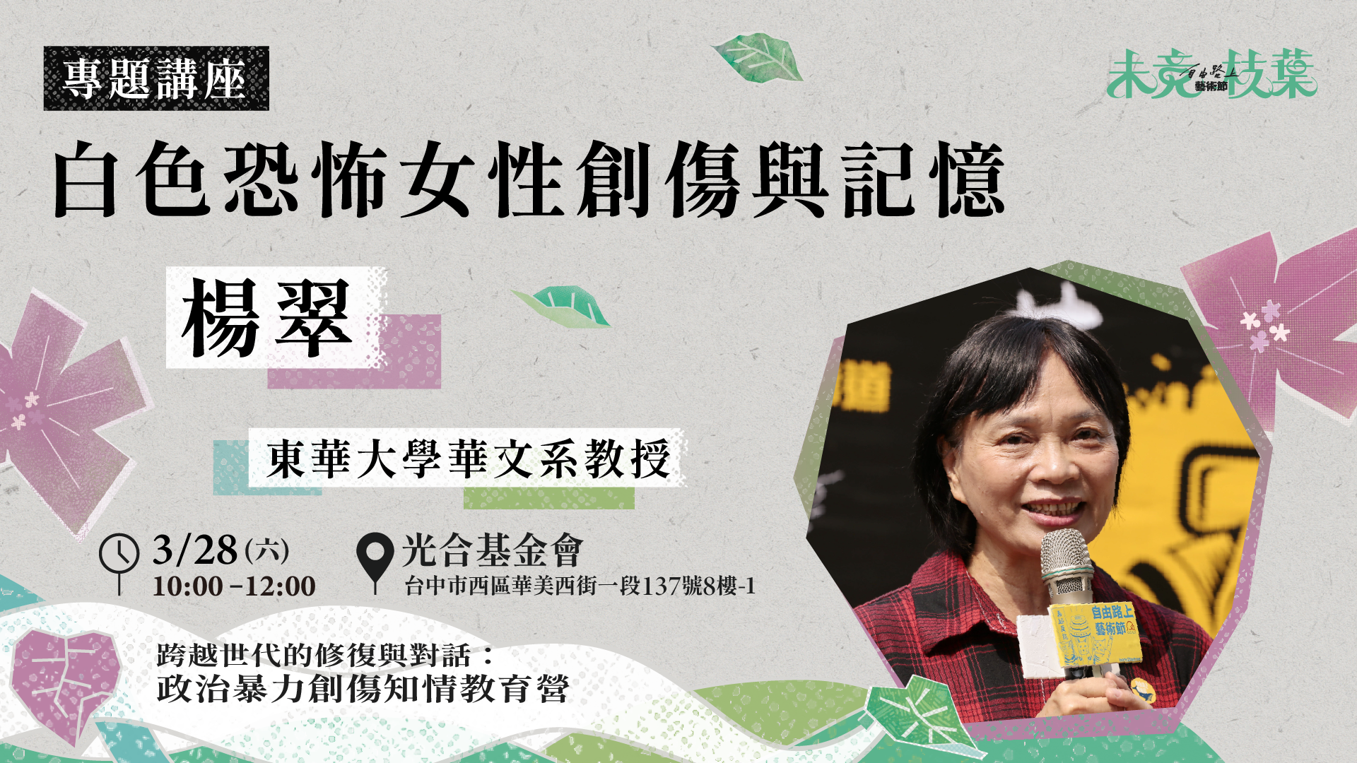 3/28(六)10:00-12:00| 《白色恐怖女性創傷與記憶》 專題講座