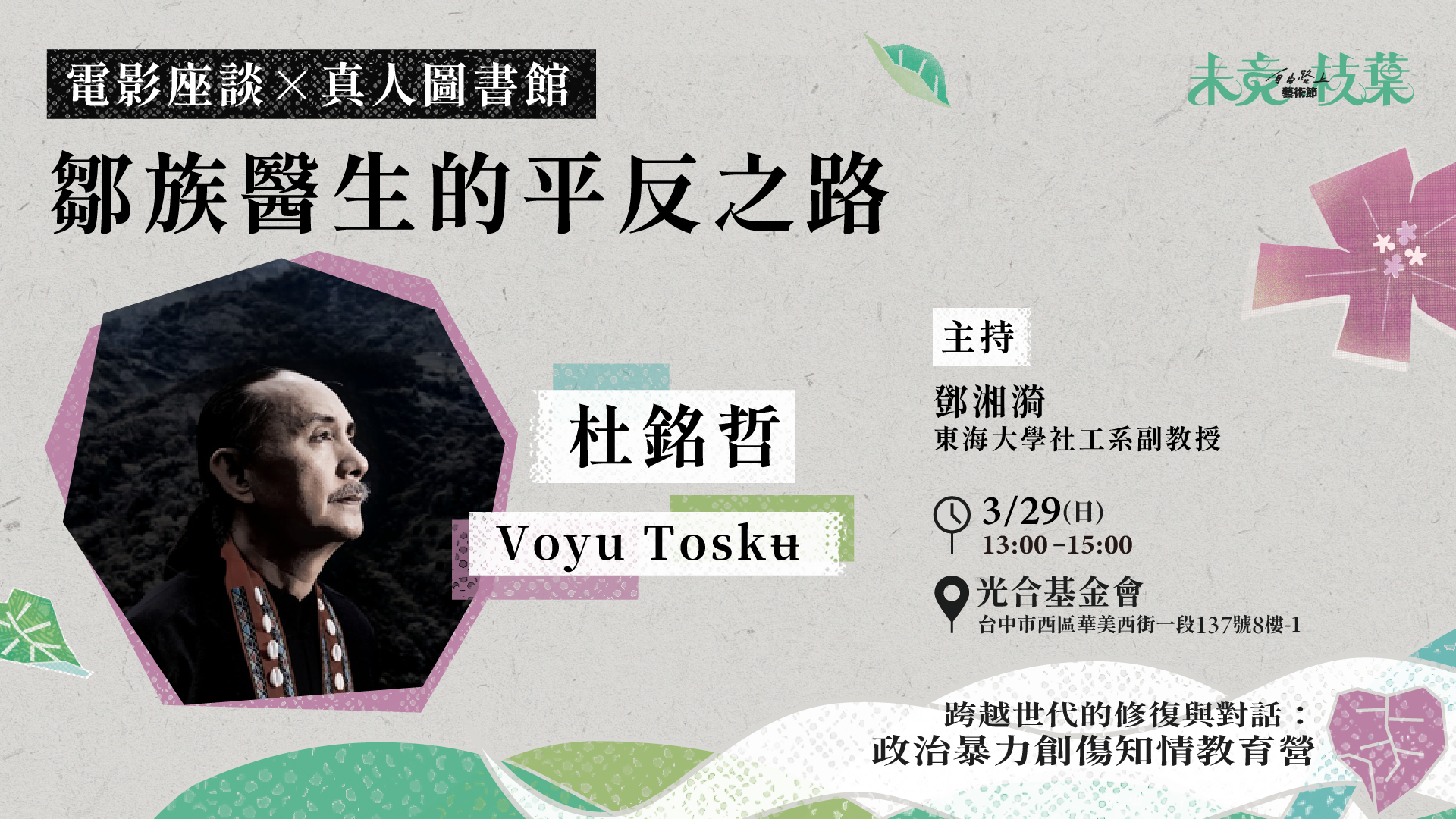 3/29(日)13:00-15:00|《 鄒族醫生的平反之路》 電影座談 × 真人圖書館