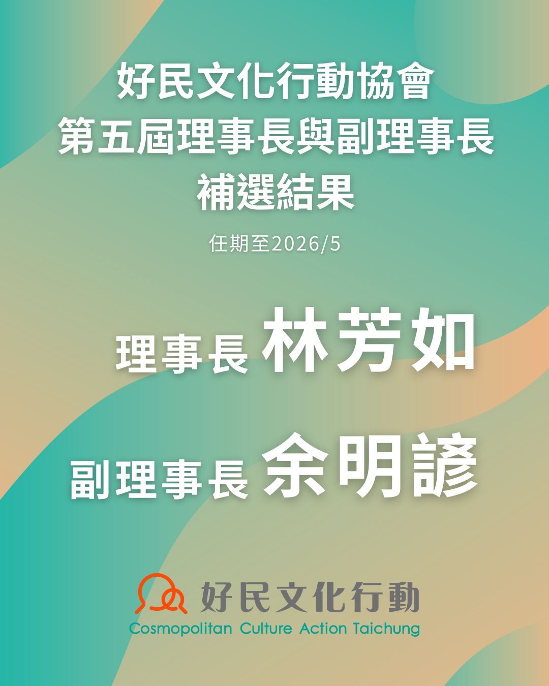 經辦理第五屆理事長、副理事長補選,選舉結果選任林芳如為理事長、余明諺為副理事長,任期至2026年5月。
