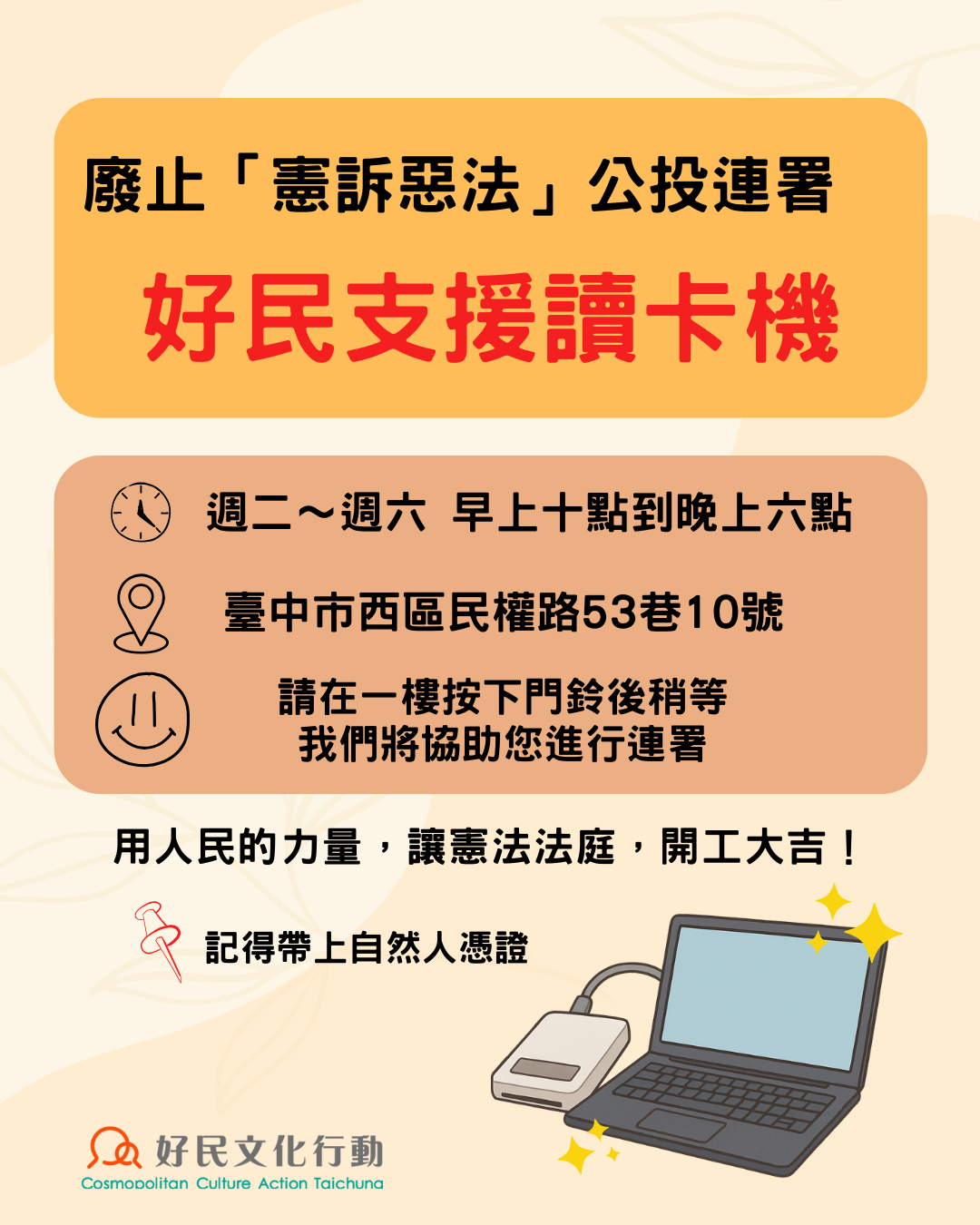 你只要人來就好,卡帶著就行,我們協助讓大家可以輕鬆連署~