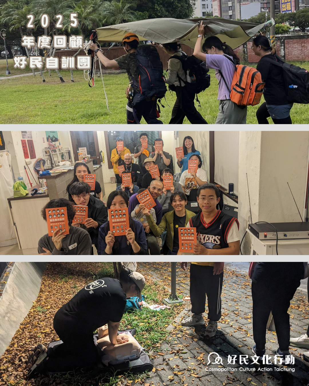 2025年,好民文化行動協會與台中市民團協會合作,籌組好民自訓團,由台中民團協會作為教練,安排團員的課程與訓練。目前目前冬季班也持續舉辦中,由原先的學員帶領新夥伴一起訓練,,讓台中的民防能自主動員起來,成為社區中的韌性基礎。