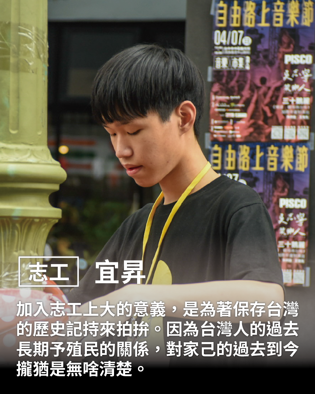 對我來說,參加好民志工最大的意義,是跟保存台灣的歷史記憶有關。因為台灣長期受到殖民和威權統治的影響,其實很多台灣人對自己的歷史、對過去發生過什麼事情,都還不是很清楚。我覺得能透過這些活動,把歷史記憶留下來、繼續被討論,是一件很重要的事情。