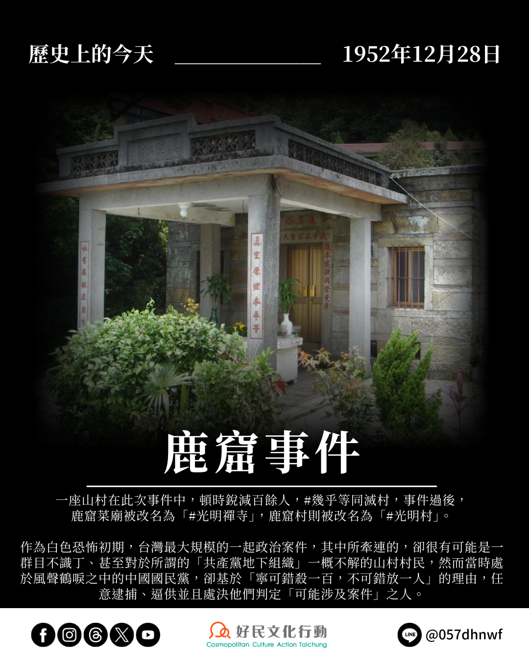 一座山村在此次事件中,頓時銳減百餘人,幾乎等同滅村,事件過後,鹿窟菜廟被改名為「光明禪寺」,鹿窟村則被改名為「光明村」。