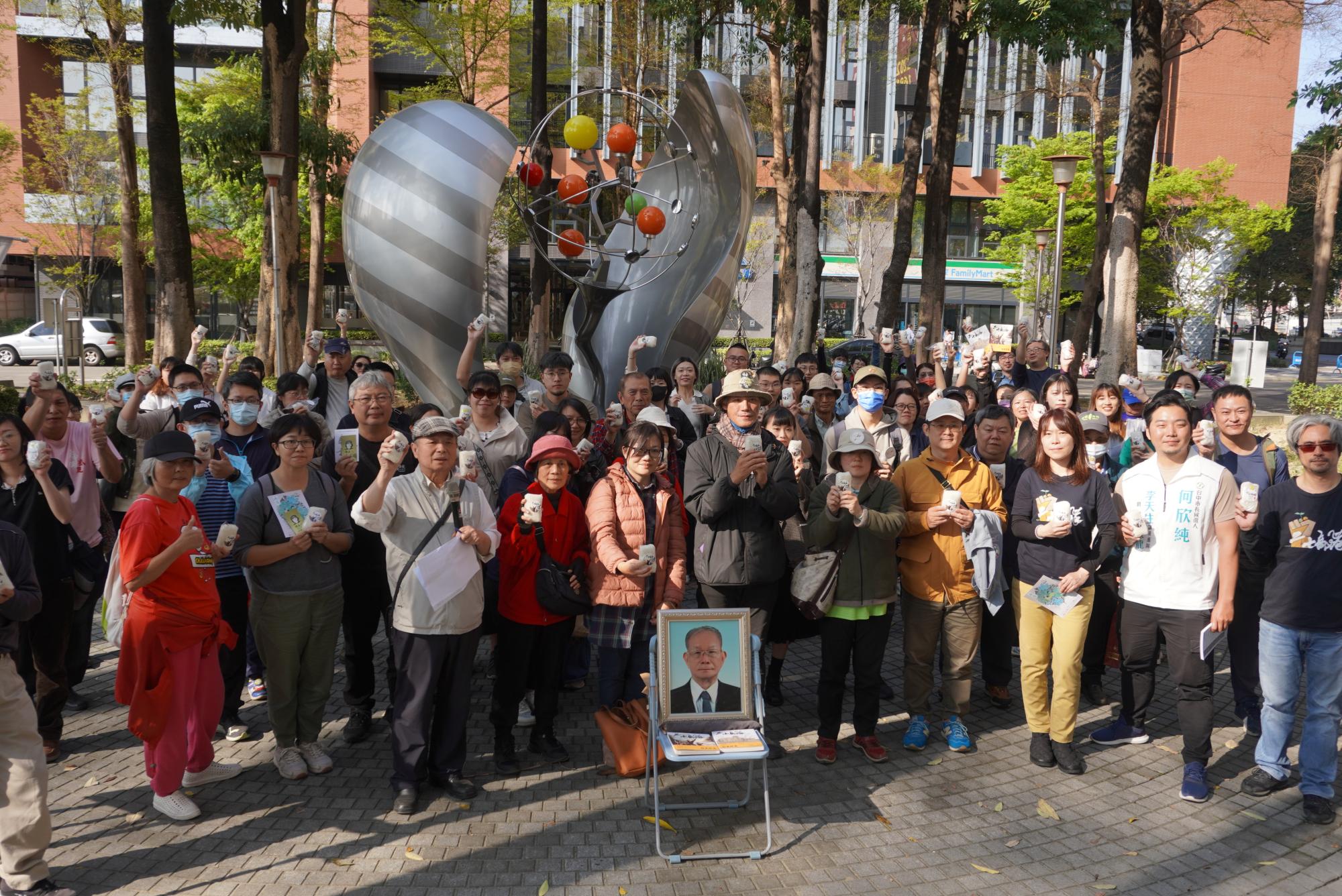 在開場發言之後,陳彥斌理事長帶領參與者走至紀念碑旁,結合周遭地景進行解說。介紹了二七部隊如何成立、撤退到埔里後與國府軍的對抗等等,在解說過程中他特別指向一旁的街道,說明該處正是當年國府軍沿街進行掃射的路線之一。