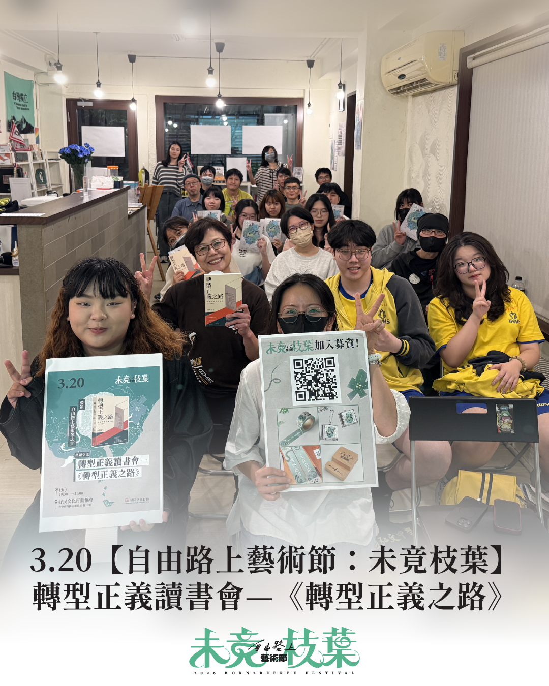 我們無法還給前輩逝去的青春與生命,但可以讓他們活在集體記憶中。當我們這些「枝葉」日益繁茂,便能為這座島嶼遮蔽恐懼與謊言。當我們透過這場讀書會,知道真相後最重要的挑戰在於:如何與不同立場的人開啟對話,並由我們這代人來接力,共同建立一個真正自由民主、不再讓自由成為權力祭品的國家。未竟的事業,將由更多的枝葉,在自由的路上繼續完成。