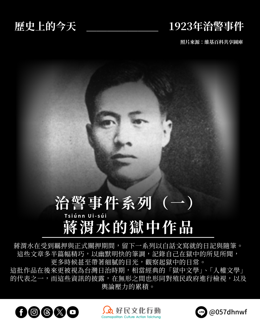 【治警事件系列(一):蔣渭水的獄中作品】...