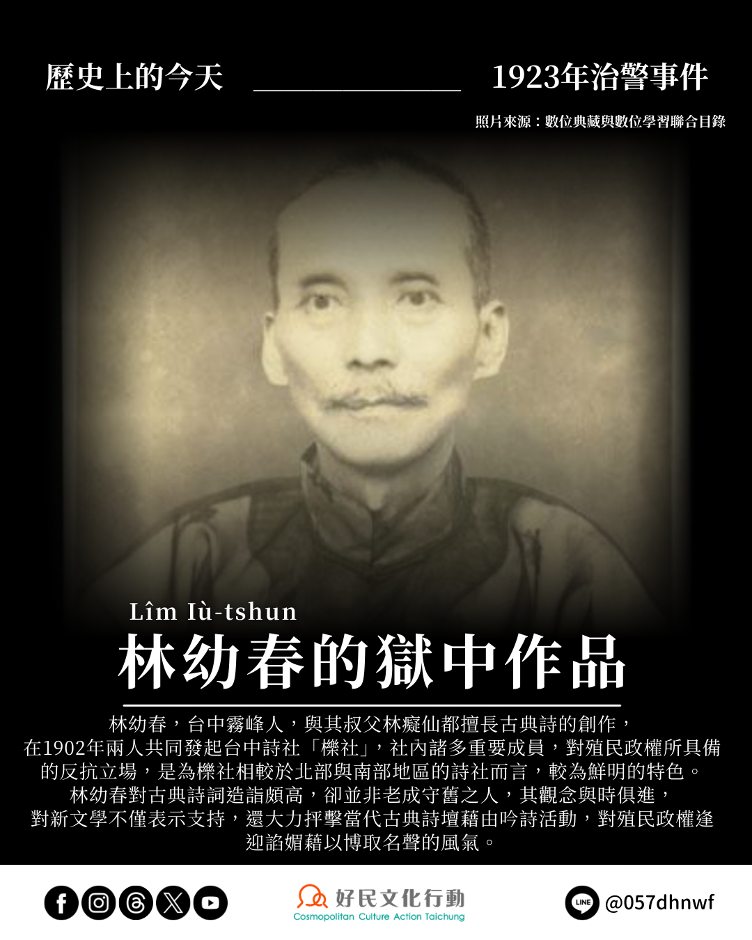 【治警事件系列(三):林幼春〈獄中感春賦落花詩以自遣〉】 ...