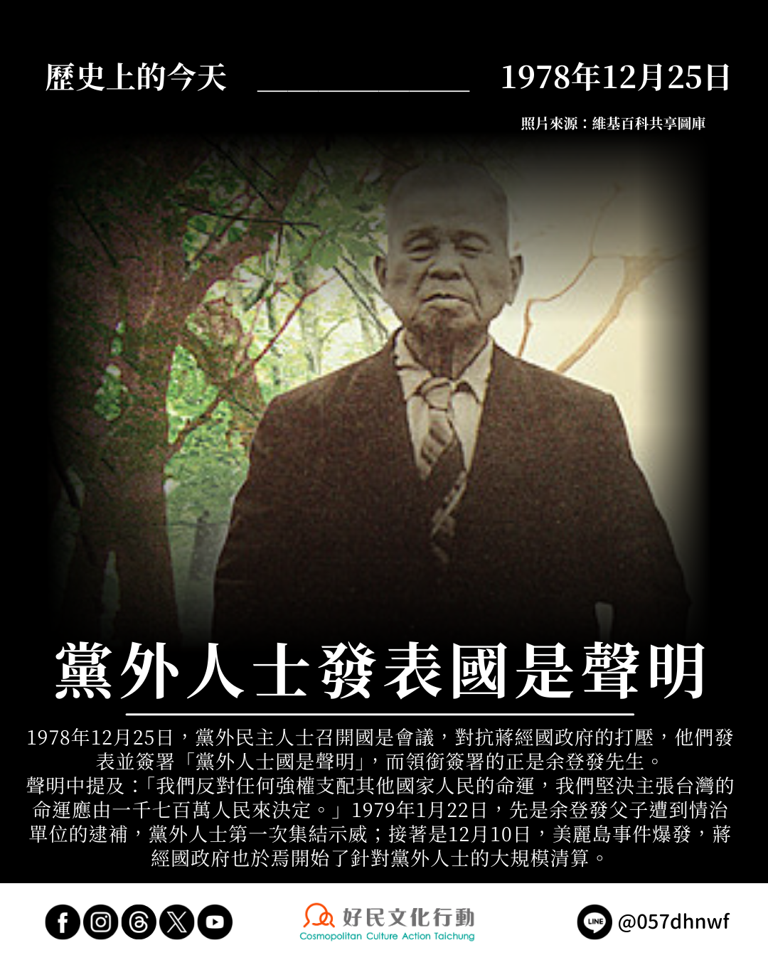 【歷史上的今天——黨外人士發表國是聲明】 ...