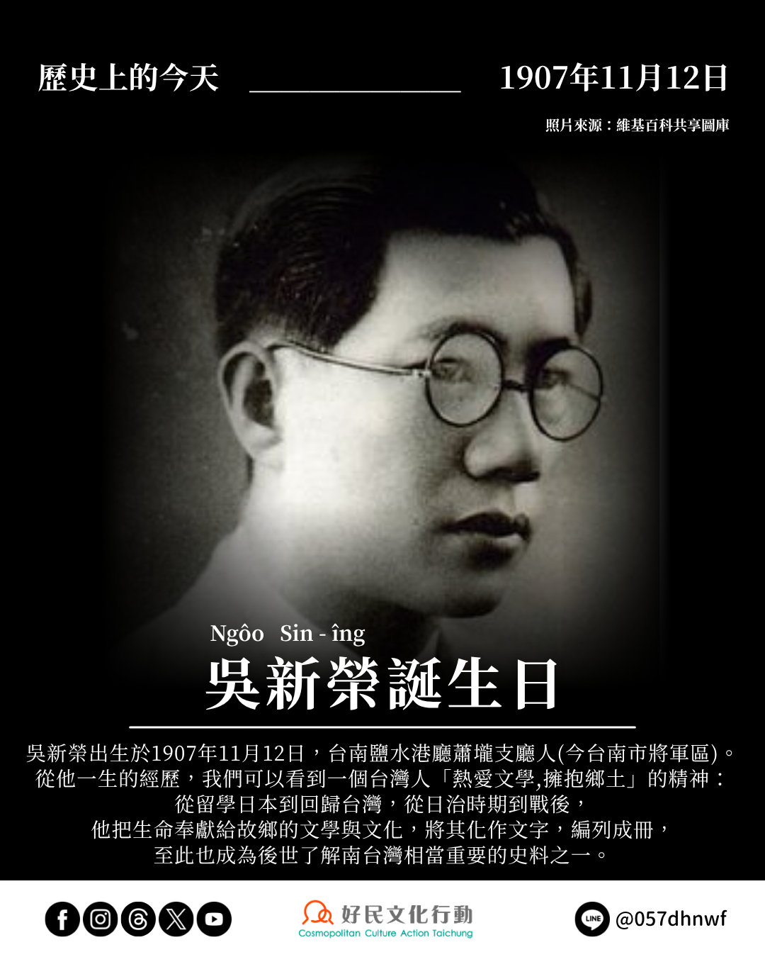 Read More葉石濤(Ia̍p Si̍k-tôo),1925年11月01日出生於台南市白金町,年少時曾經接受過漢文教育,後來考進台南州立二中(今國立台南一中)。