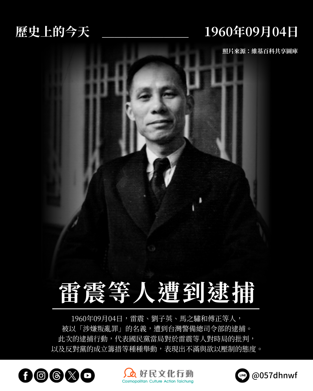 【歷史上的今天——0904雷震等人遭到逮捕】