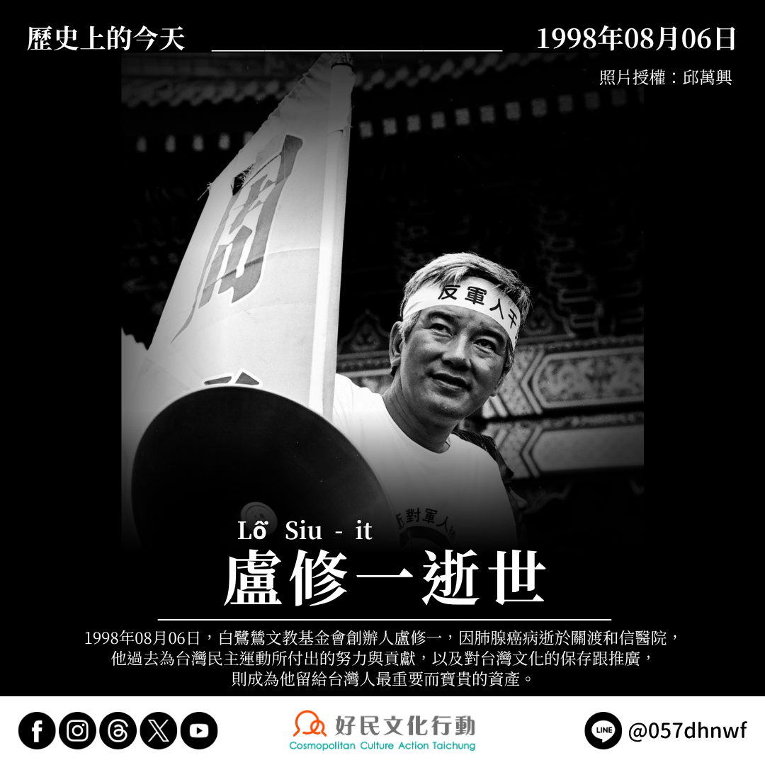 【歷史上的今天——0806盧修一逝世】