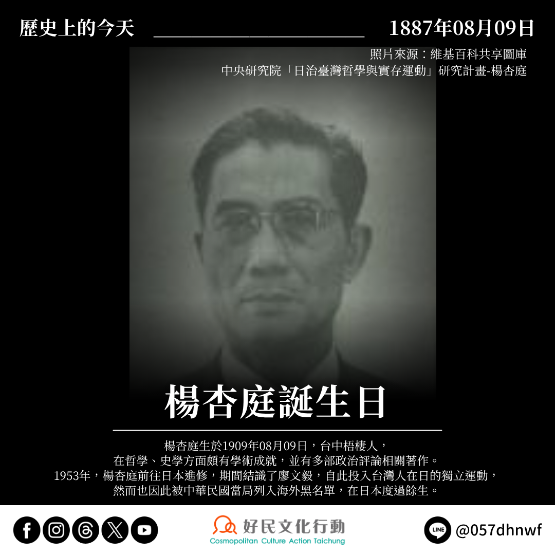 【歷史上的今天——0809楊杏庭誕生日】